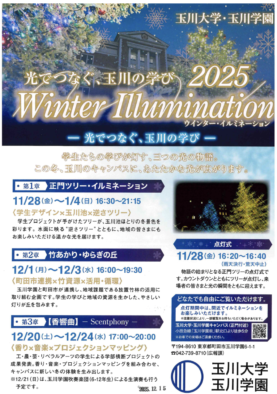この町の自慢の桜並木。これらは玉川学園の創立者、小原國芳先生と生徒たちによって、昭和の初めごろに植樹されたものです。小さな苗木ひとつひとつの根に土をかぶせながら、先生方は町の未来に思いはせられていたことと思います。