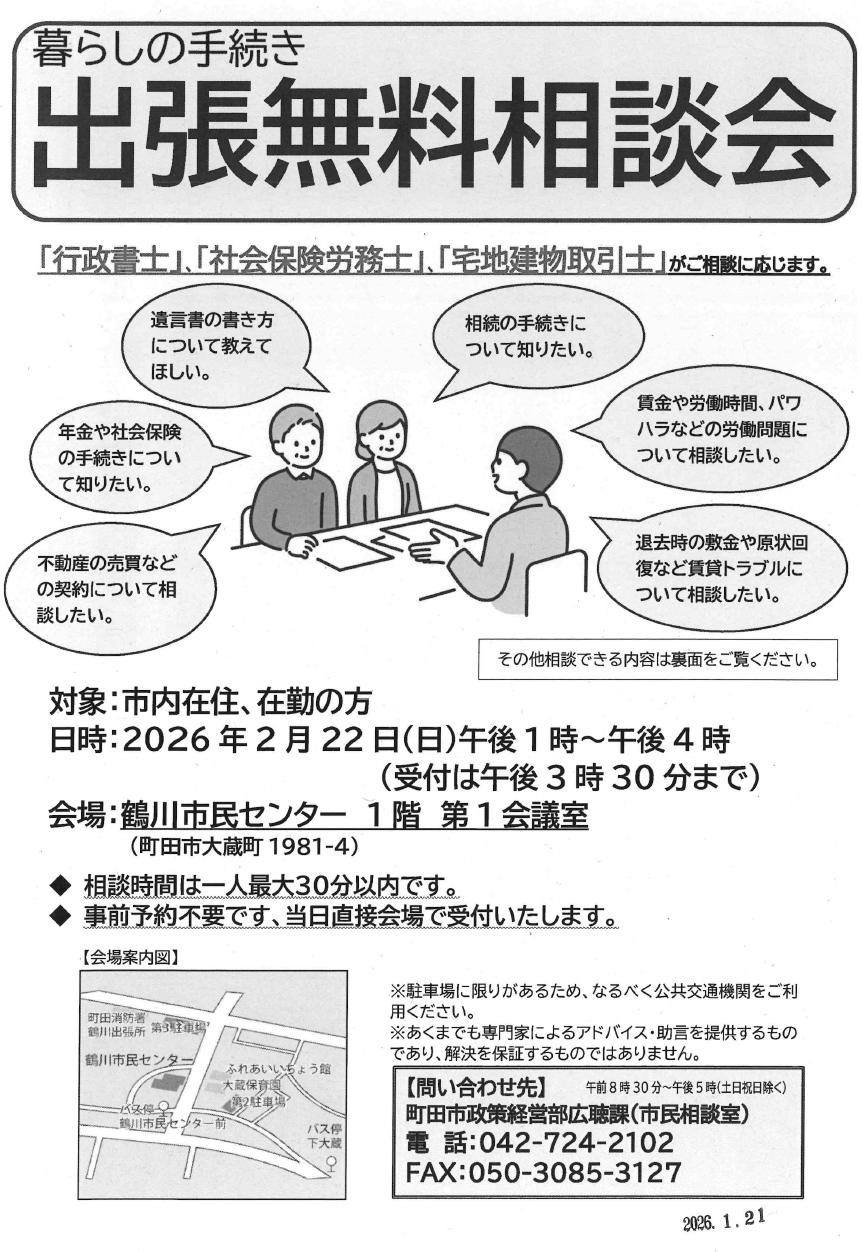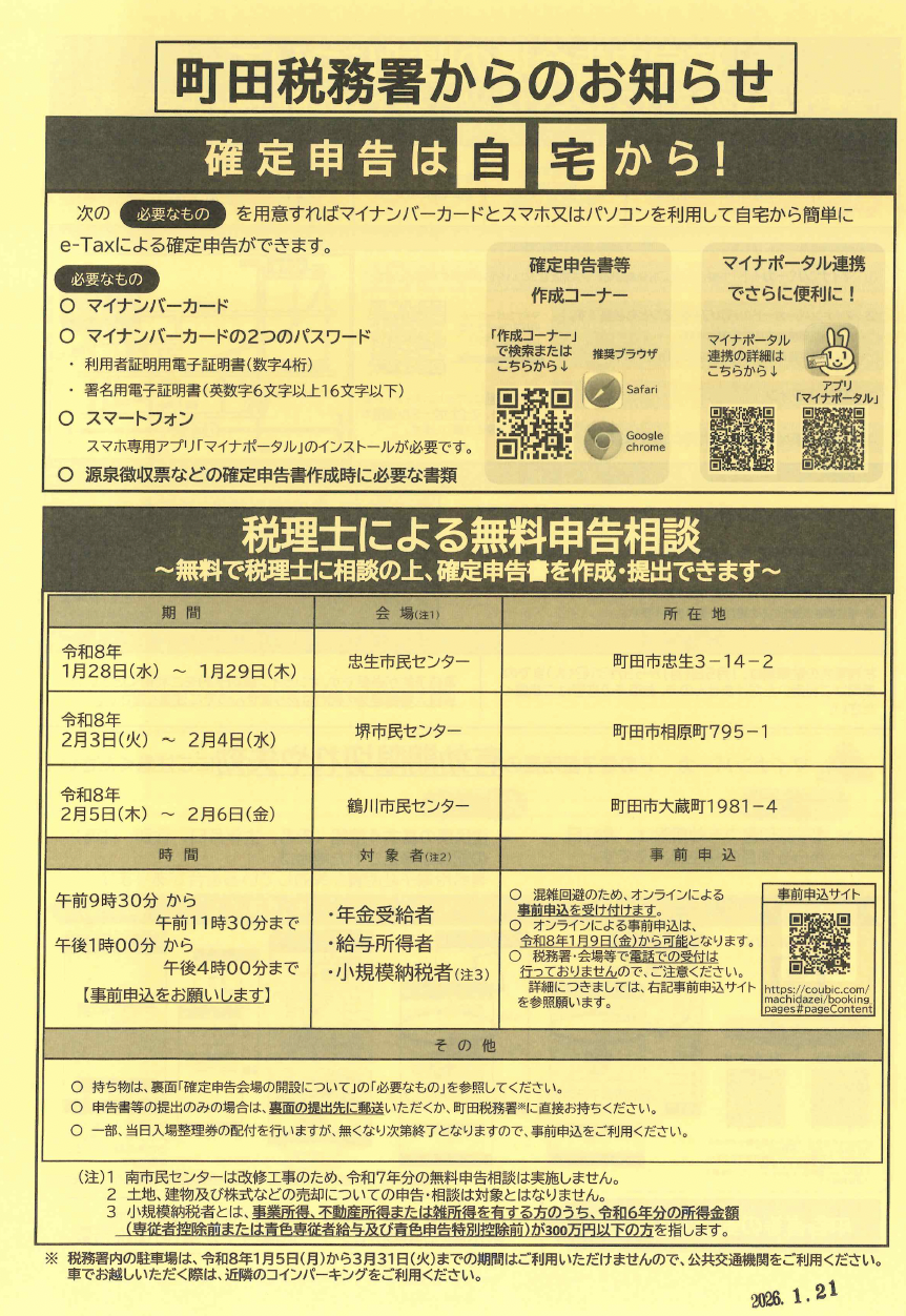 こちらの掲載物は行政(町田市、警察、消防など)や地域で活動する団体からのお知らせです