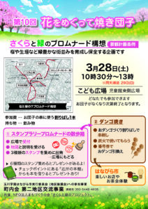 今年もはなびら市にて第10回「花をめぐって焼き団子」を開催します