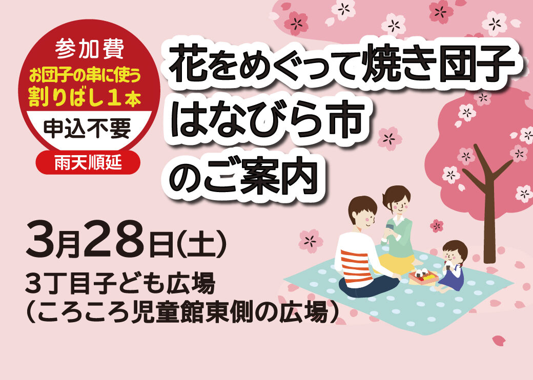 『はなびら市』11:00~15:00 - 場所 : 3丁目 子ども広場 (ころころ児童館東側の広場)
