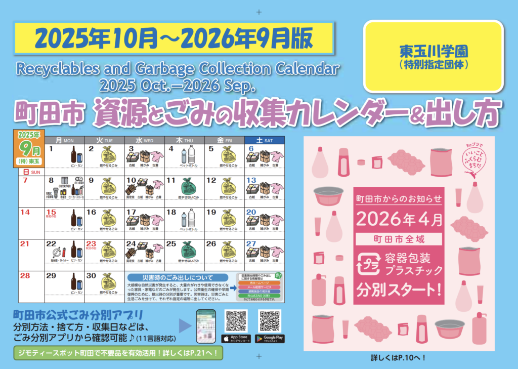 2025年10月以降の「資源とごみの収集カレンダー」が配布されました。もし10月に届かない場合は町内会事務所までご連絡ください。