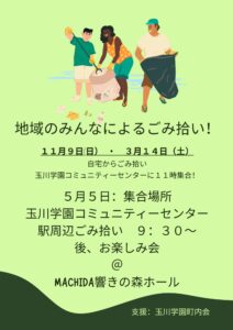 玉川学園地域の活性化をはかり、交流を深めるために活動するグループを今年も支援することとなりました。